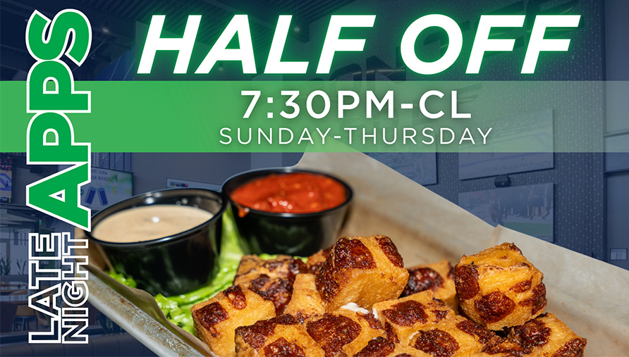Sun-Thurs (7:30PM-CL): Half Off Late-Night Apps